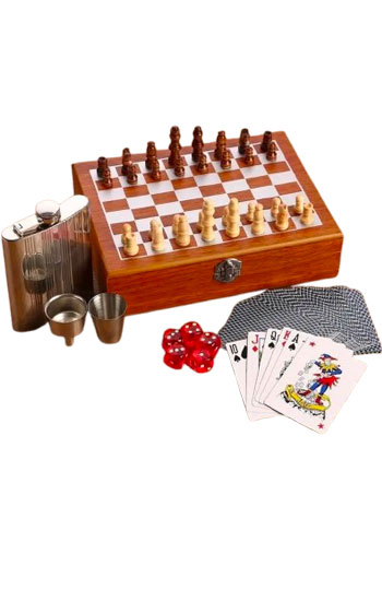 3470682 Набор 6 в 1: фляжка 8 oz, рюмка, воронка, кубики 5 шт, карты, шахматы